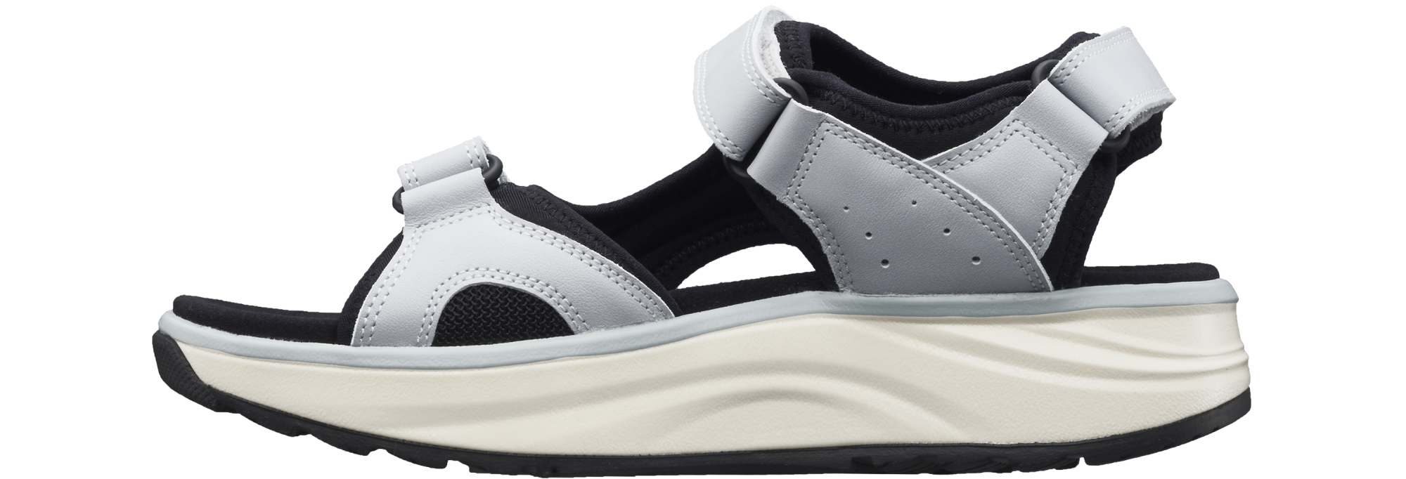 Leather and mesh oudoor sandal, with smoothly padded neoprene lining and adjustable velcro straps on the heel, instep and forefoot. Fitted with an ergonomic footbed wrapped with soft, velvety microfiber. Implemented with the Joya Active sole technology that guarantees an ideal combination of cushioning, rebound and stability. For dynamic people always on the move who need comfort in action and performance on every surface.