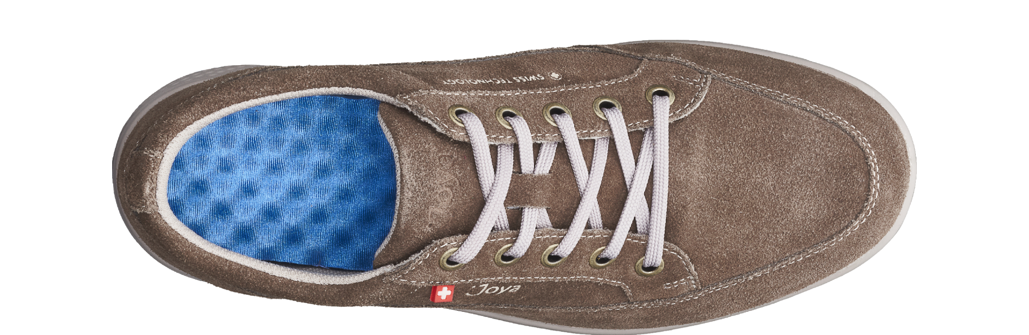Lucy brown: Essential and versatile lace up shoe with supple velour leather upper and breathable mesh lining. Featuring softly padded collar and tongue for ultimate, uncompromising comfort. The ideal pick to enhance your everyday mobility with a relaxed look and feel. Topped off with the extraordinary Joya Nuvola sole technology, which comprises soft and elastic midsole plus lightweight rubber outsole.
