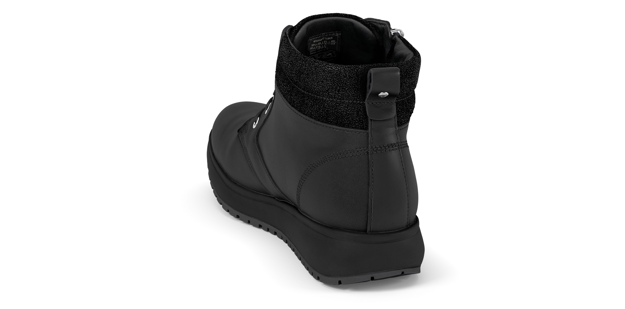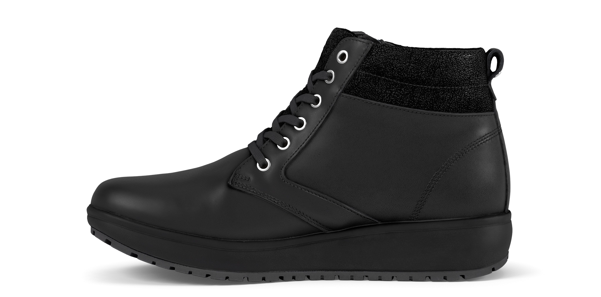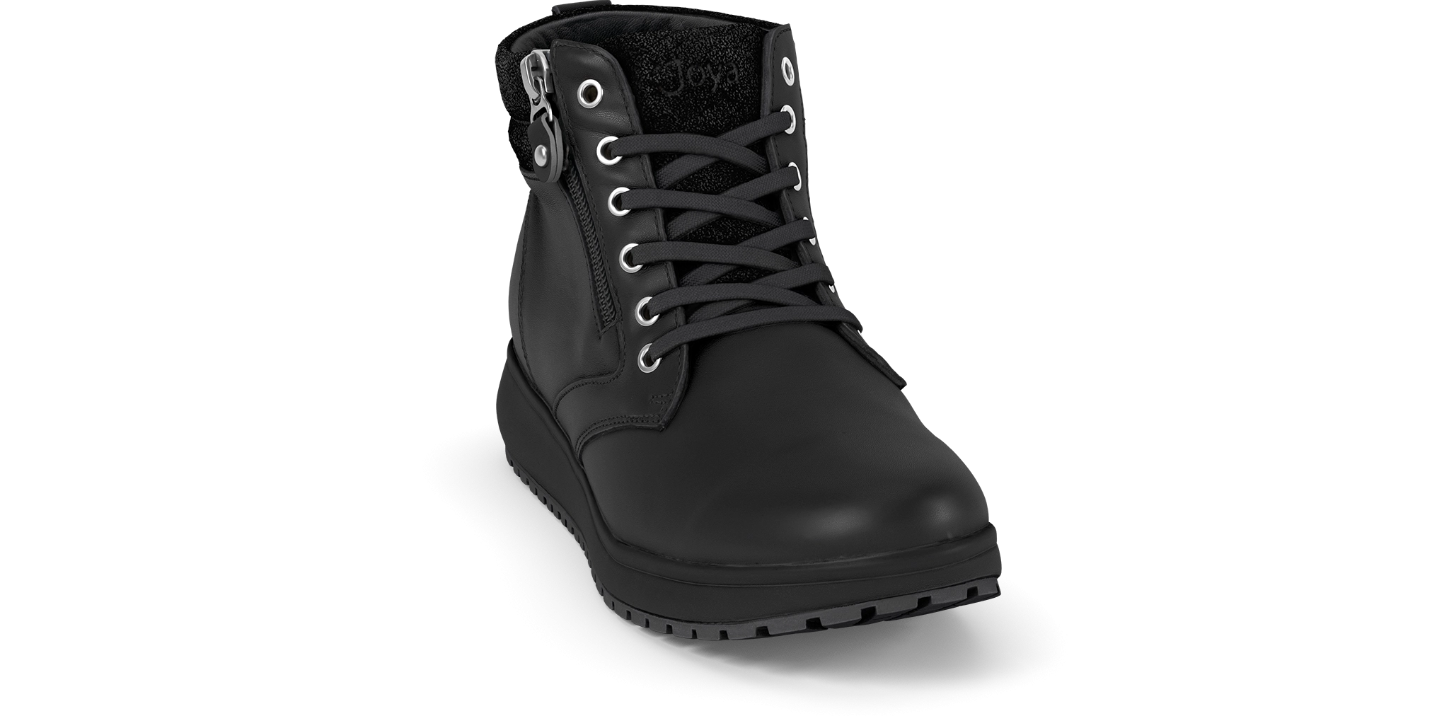 Smart lace up boot with zip for easy entry. Soft full grain leather upper with cushy sparkling suede padded collar. Leather and textile lining. Enhanced with the Joya Senso sole technology with unique cushioning effect, that provides optimum relief for back muscles and joints.